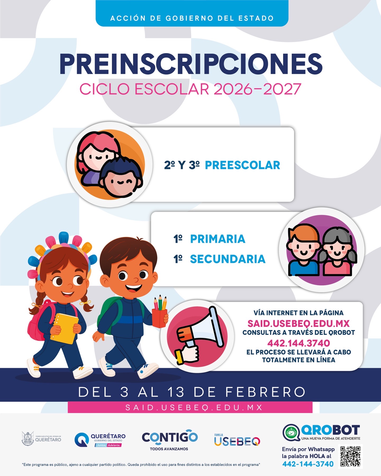 Como alternativa, el proceso también puede realizarse mediante QroBot, enviando la palabra “Hola” al número 442 144 37 40, donde las y los usuarios recibirán orientación paso a paso, además de información ante cualquier duda.