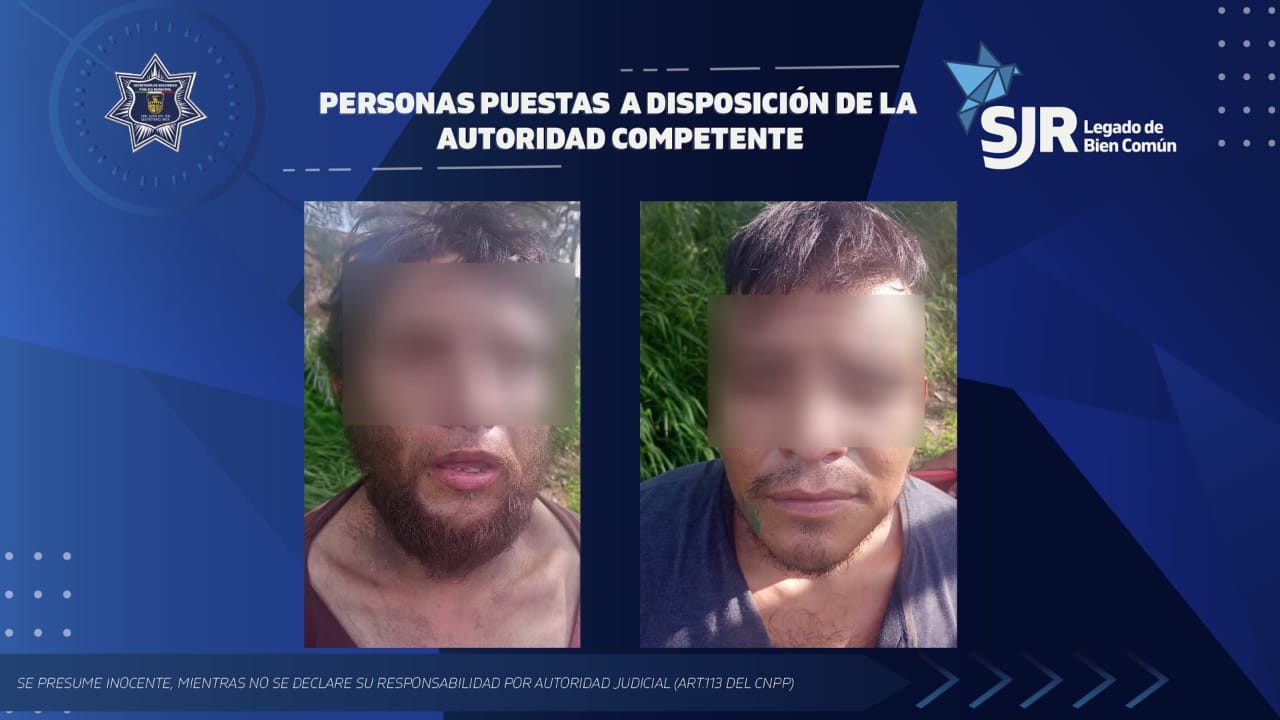 Elementos de la Secretaría de Seguridad Pública Municipal (SSPM-SJR) detuvieron a dos hombres señalados por el delito de robo a lugar cerrado.