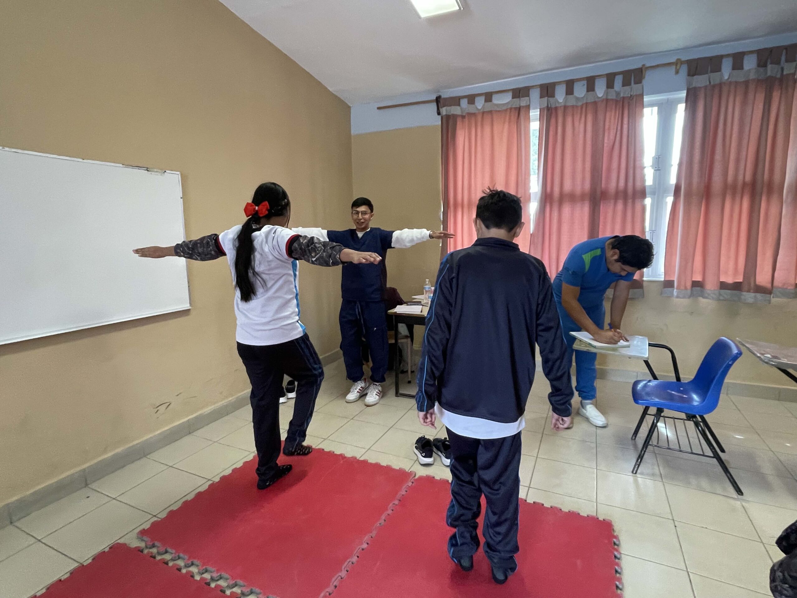 Durante la jornada, las y los universitarios evaluaron la alineación corporal de las y los estudiantes de nivel secundaria, con el objetivo de identificar de manera temprana posibles alteraciones posturales, como escoliosis, hiperlordosis, cifosis o desequilibrios musculares. Estas condiciones, si no se atienden oportunamente, pueden impactar el desarrollo físico, generar molestias crónicas y afectar incluso el rendimiento escolar.