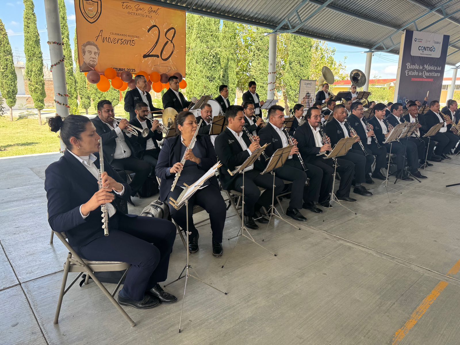 El primer concierto se llevó a cabo en la secundaria Octavio Paz del municipio de El Marqués, donde participaron 590 estudiantes, 29 docentes y madres y padres de familia, quienes disfrutaron de una jornada cultural y pedagógica diseñada para acercar la música a los entornos escolares.