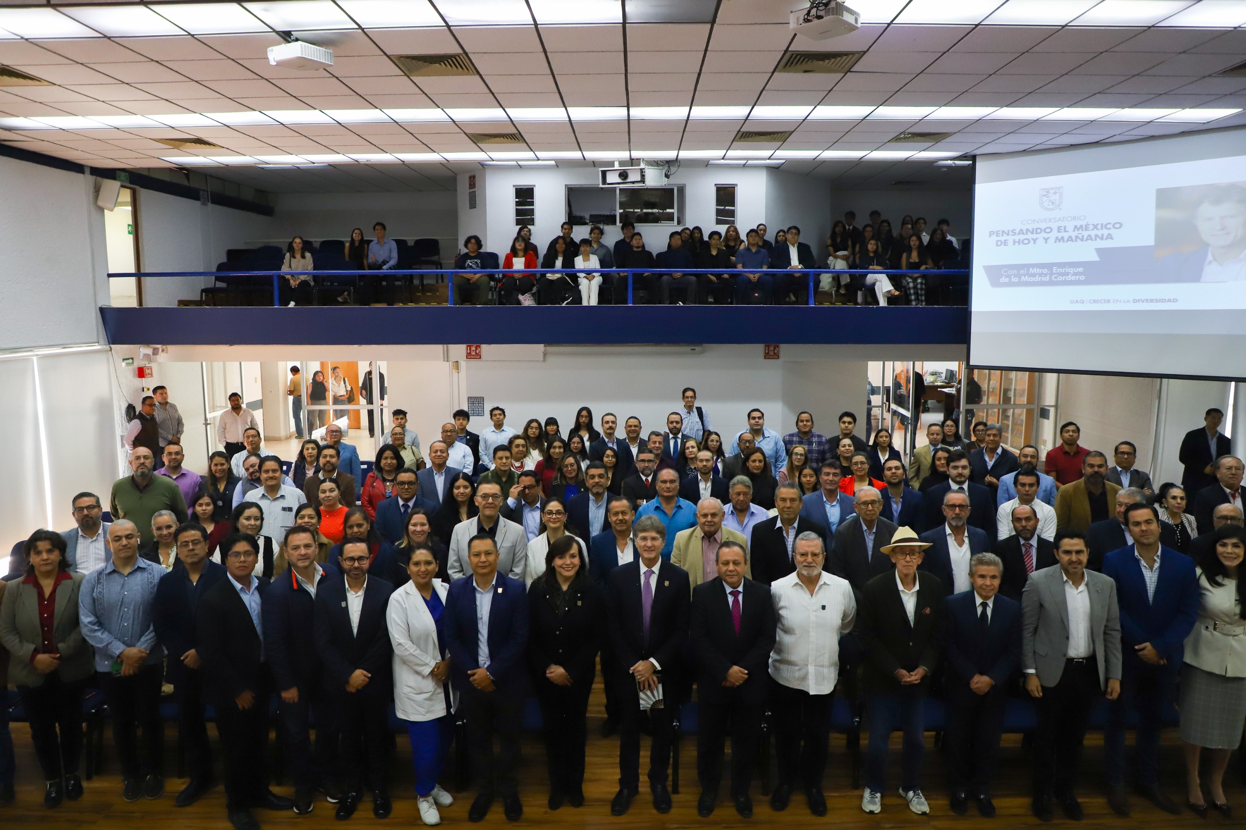 La Universidad Autónoma de Querétaro (UAQ), encabezada por la rectora Dra. Silvia Amaya Llano, llevó a cabo el conversatorio “Pensando el México de hoy y mañana” en el Auditorio Fernando Díaz Ramírez, donde estudiantes, docentes y autoridades universitarias participaron en un diálogo abierto sobre los desafíos actuales del país y la relevancia de las universidades en la construcción del futuro nacional.
