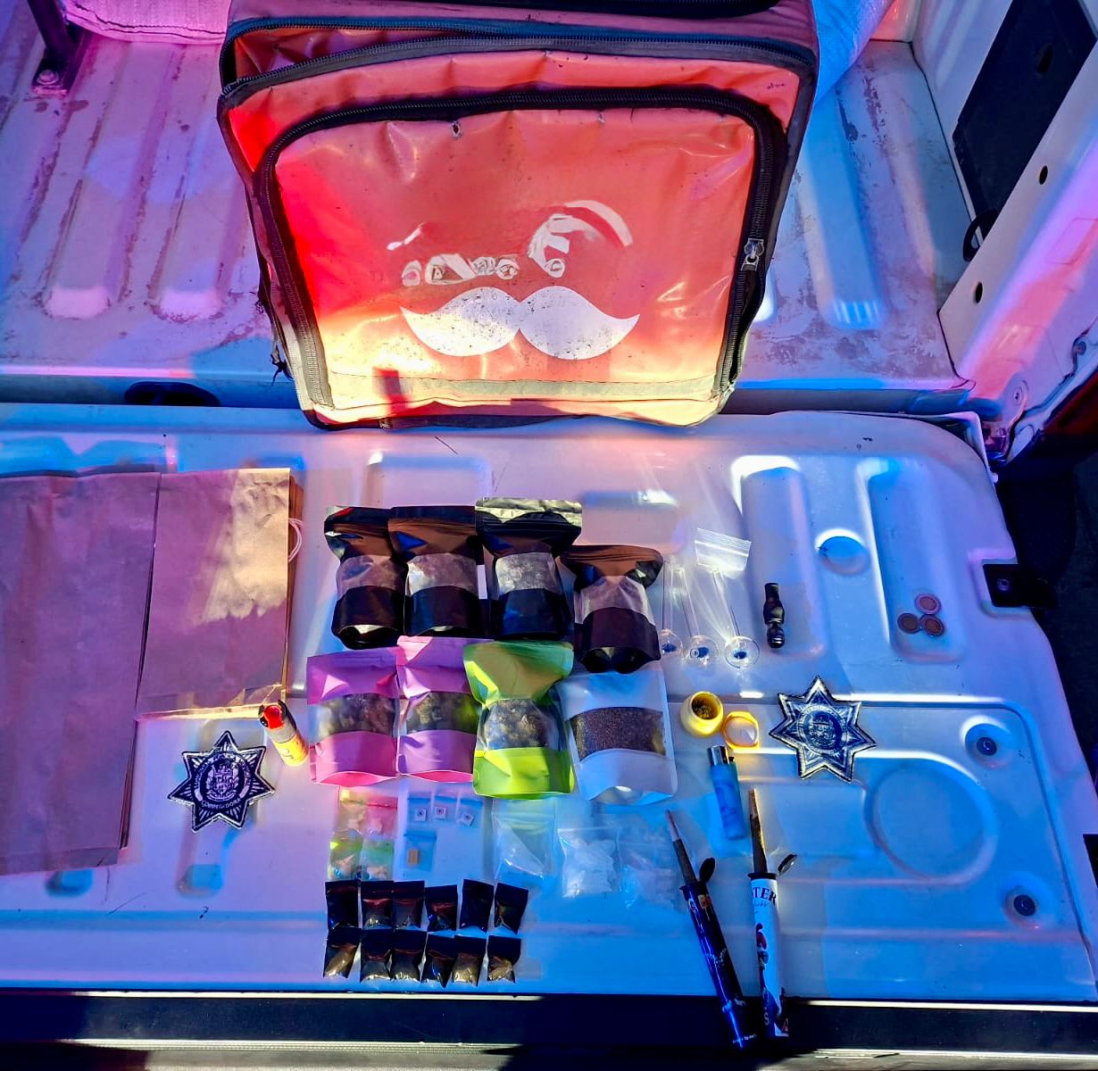 Tras marcarle el alto e intentar dialogar con él, el individuo reconoció portar droga, por lo que se le practicó una inspección preventiva. En una mochila color naranja, del tipo utilizado para entregas a domicilio, fueron localizadas varias sustancias con características de narcóticos.