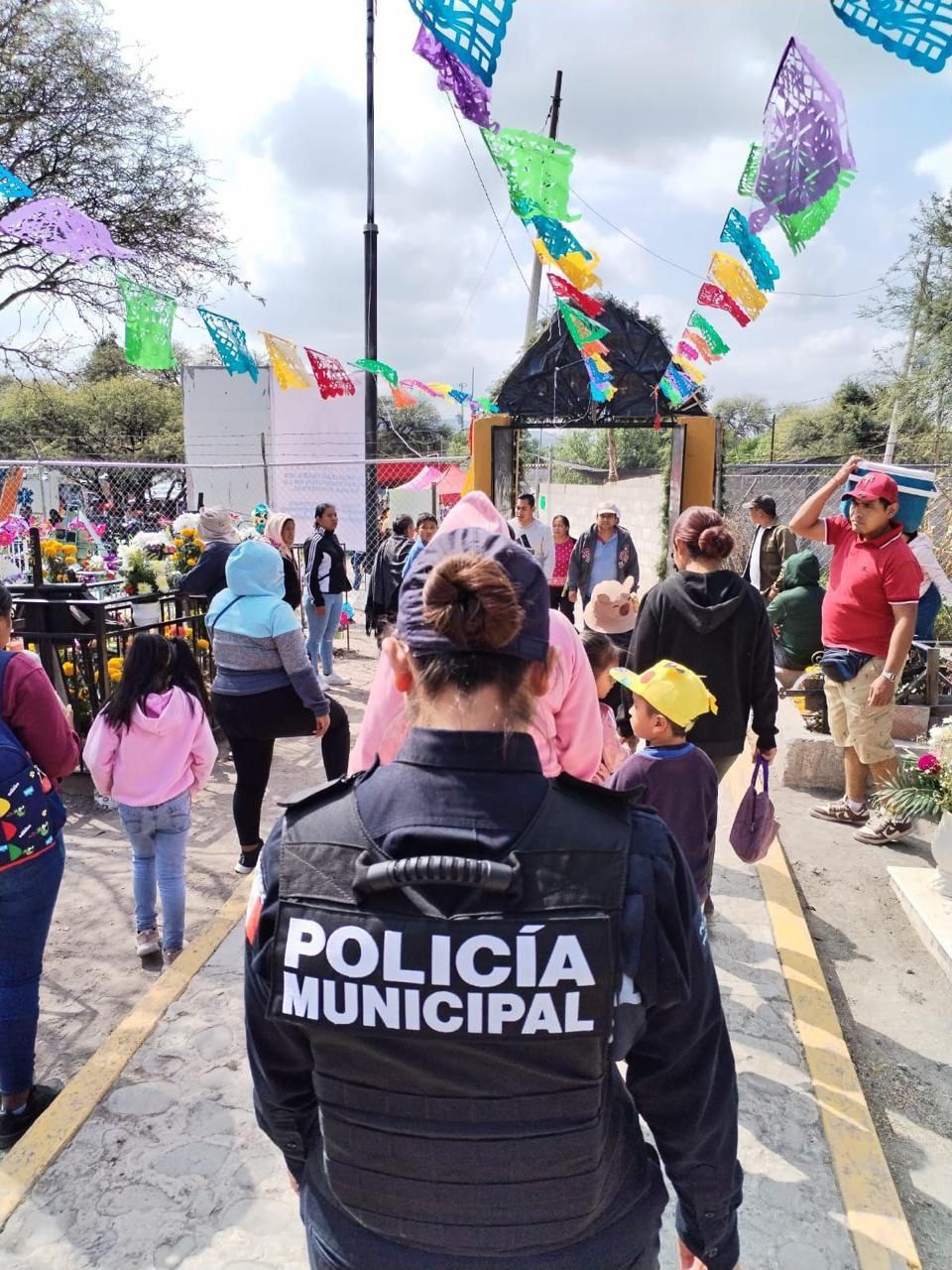 Durante los días 31 de octubre, 1 y 2 de noviembre, se desplegaron más de 400 elementos de distintas áreas operativas para garantizar la seguridad, el orden y la limpieza en los ocho panteones municipales, a los que acudieron alrededor de 102 mil visitantes.
