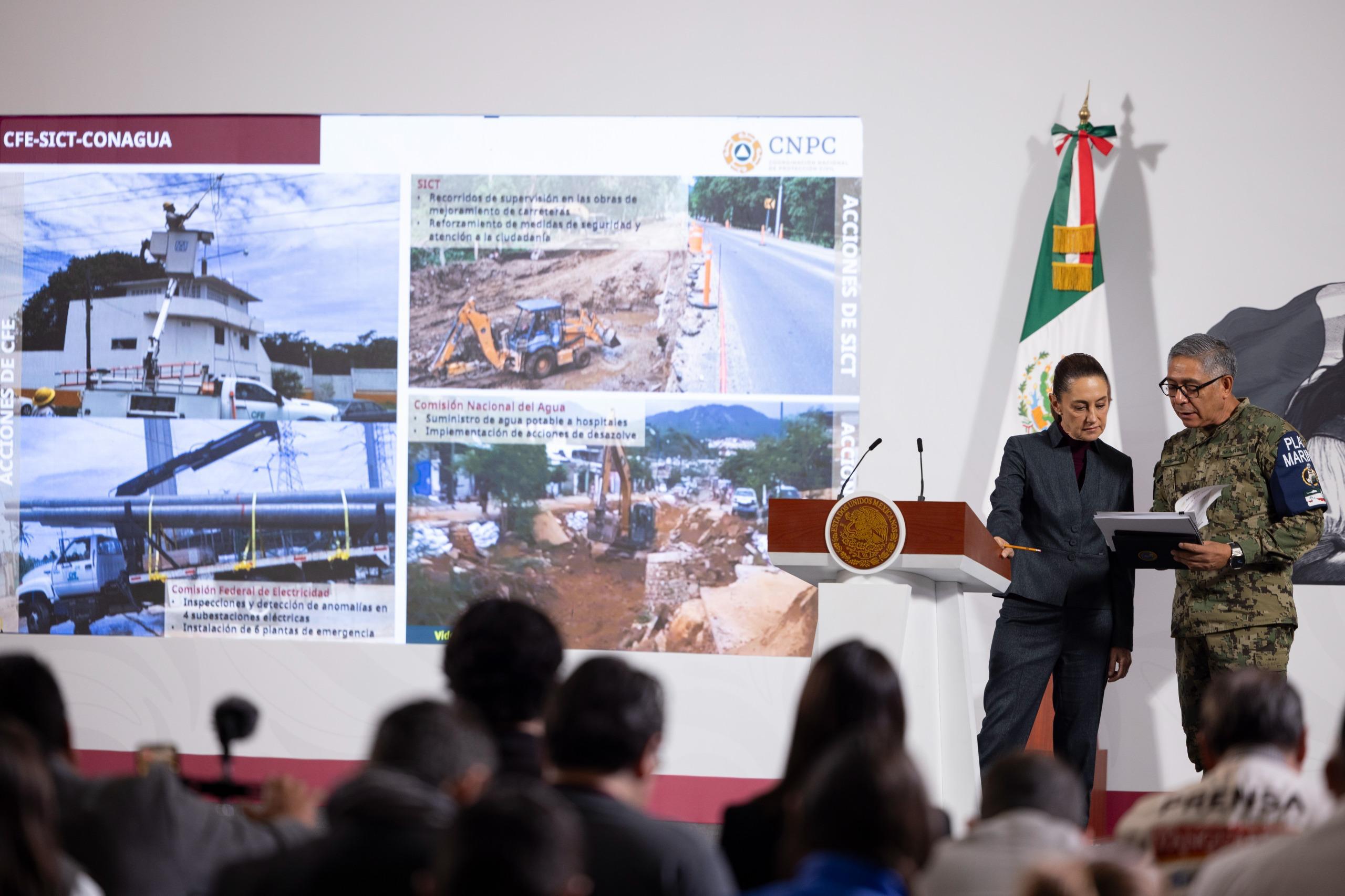 “Agradezco a la población que atendió el llamado de las autoridades para refugiarse; el fenómeno sigue generando fuertes vientos y lluvias, por lo que hay que mantenerse alerta”, expresó la mandataria, al tiempo que reconoció la labor de la Marina, la Sedena y la Coordinación Nacional de Protección Civil por la atención oportuna a la emergencia.