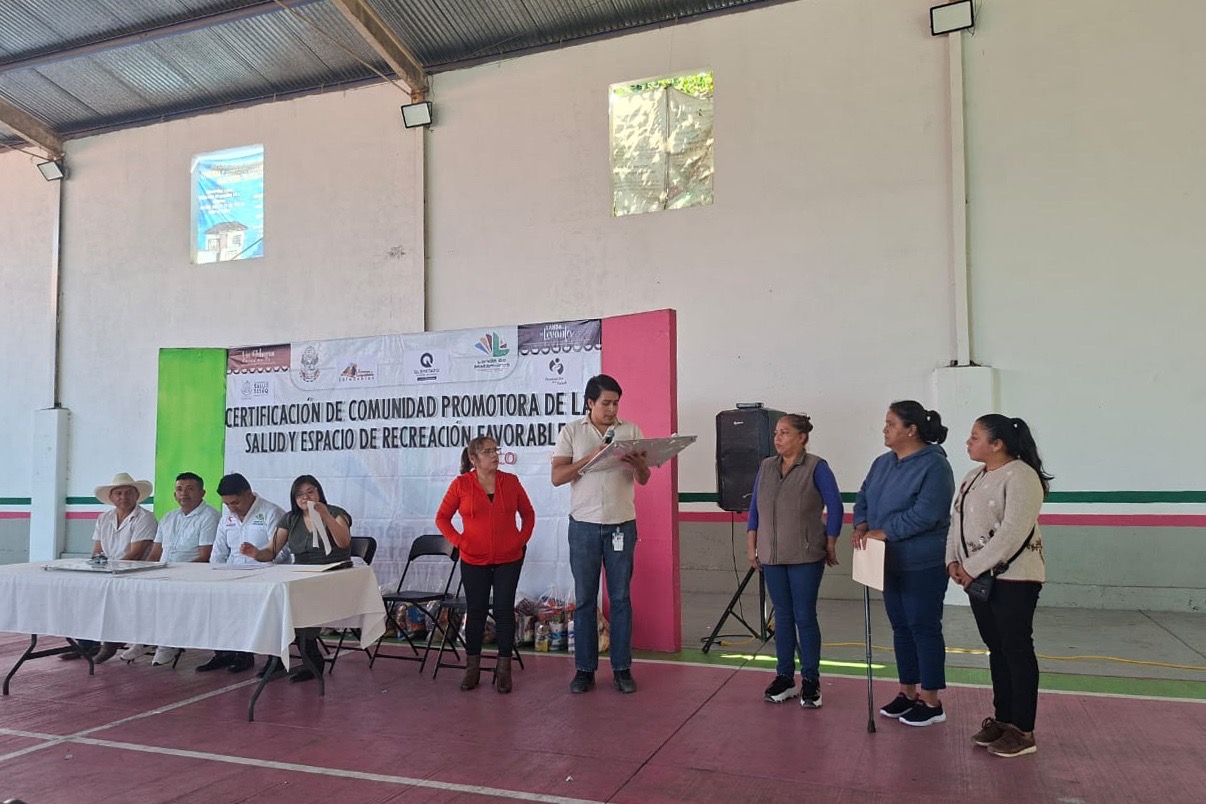 Como parte de las acciones para promover entornos que favorezcan la salud y el bienestar social, la Secretaría de Salud del Estado de Querétaro (SESA) otorgó la certificación a la localidad de Tilaco como Comunidad Promotora de la Salud, así como el reconocimiento de Espacio de Recreación Favorable a la Salud a la Cancha Techada de Tilaco, en el municipio de Landa de Matamoros.