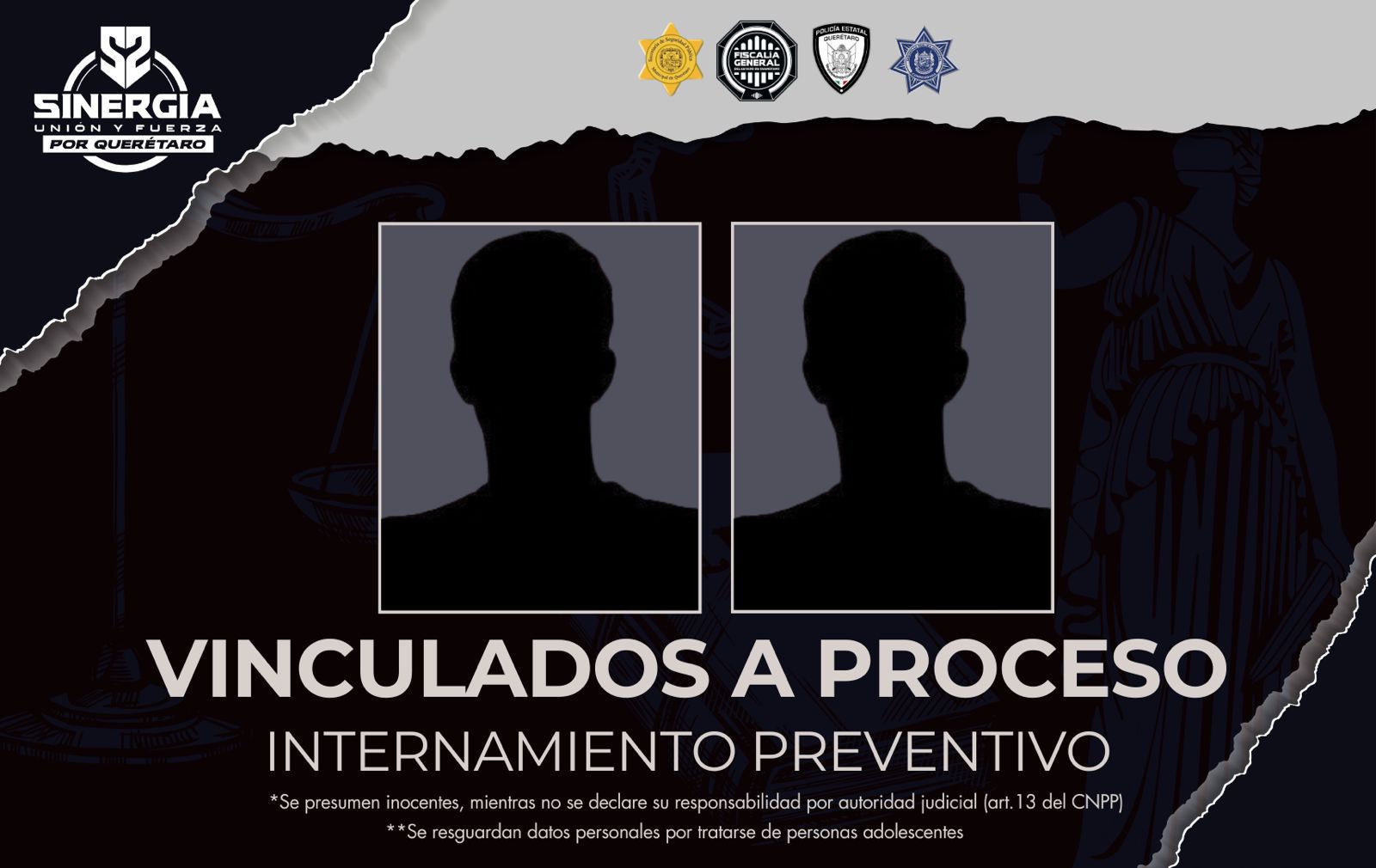 Vinculan a proceso a dos adolescentes por tentativa de homicidio y portación de armas; fueron detenidos durante operativos de Sinergia por Querétaro